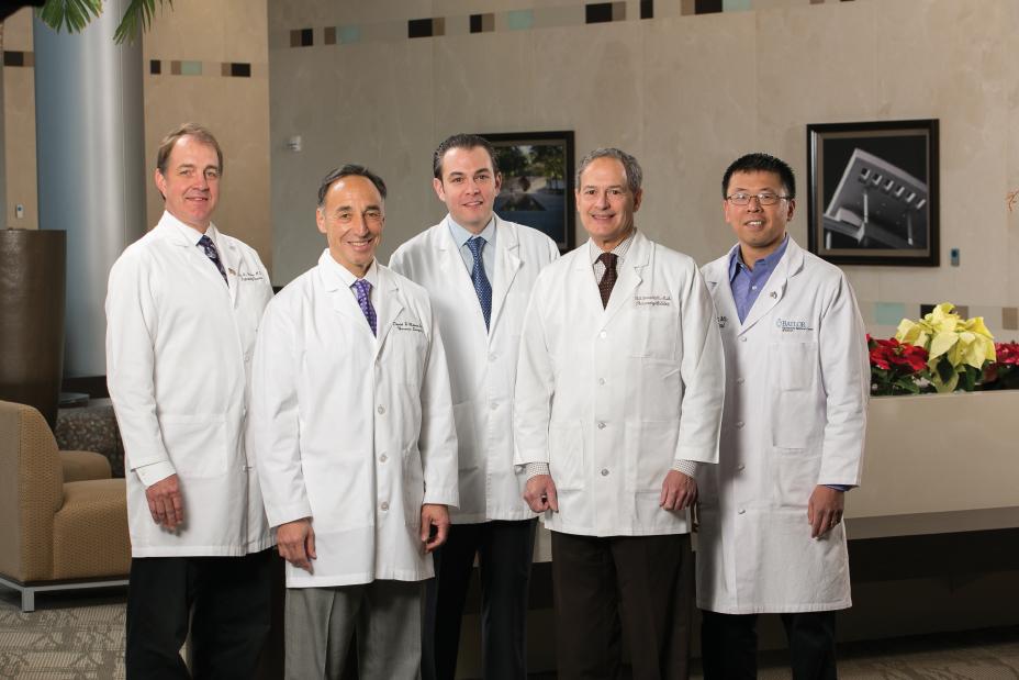 Pictured left to right: Kenneth Ausloos, MD, (Medical Director, Interstitial Lung Disease and Pulmonary Hypertension); David Mason, MD, (Chief of Thoracic Surgery and Lung Transplantation); Alexis Shafii, MD, (Surgical Director, Lung Transplantation, ECMO); Randall L. Rosenblatt, MD, (Chief of Pulmonary & Critical Care Medicine, Medical Director, Lung Transplantation); Howard Huang, MD, (Assistant Medical Director, Lung Transplantation).