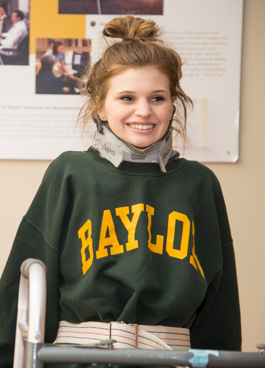 Makenzie Wethington was admitted to Baylor Institute for Rehabilitation in Dallas on January 31 after sustaining injuries during a skydiving accident. Photo: Makenzie during a physical therapy session on Feb. 3, 2014.