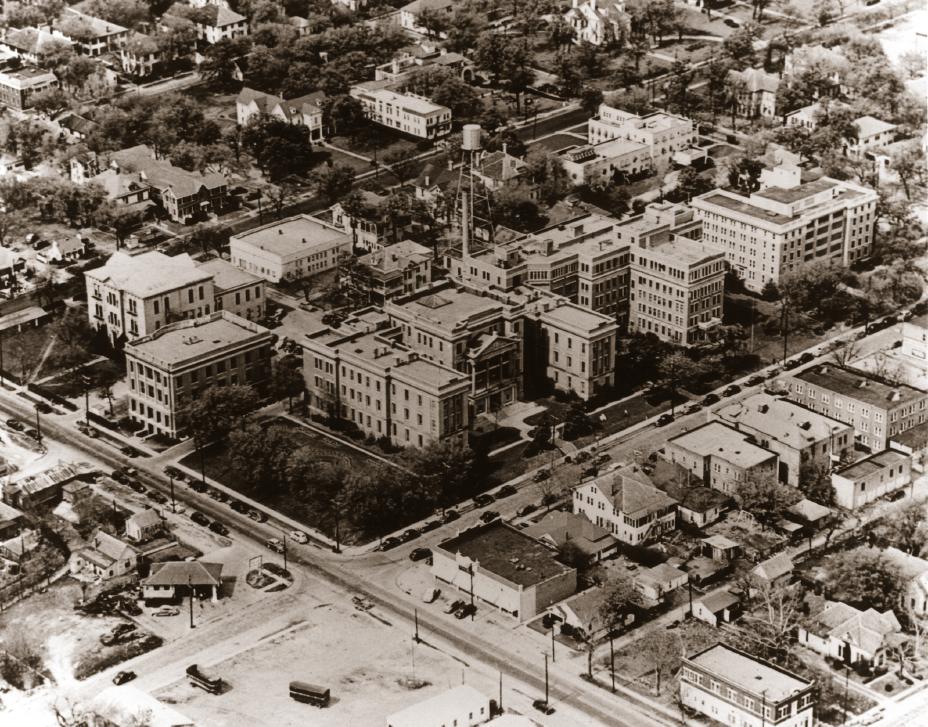 Aerial view of Baylor University Hospital Campus, 1938