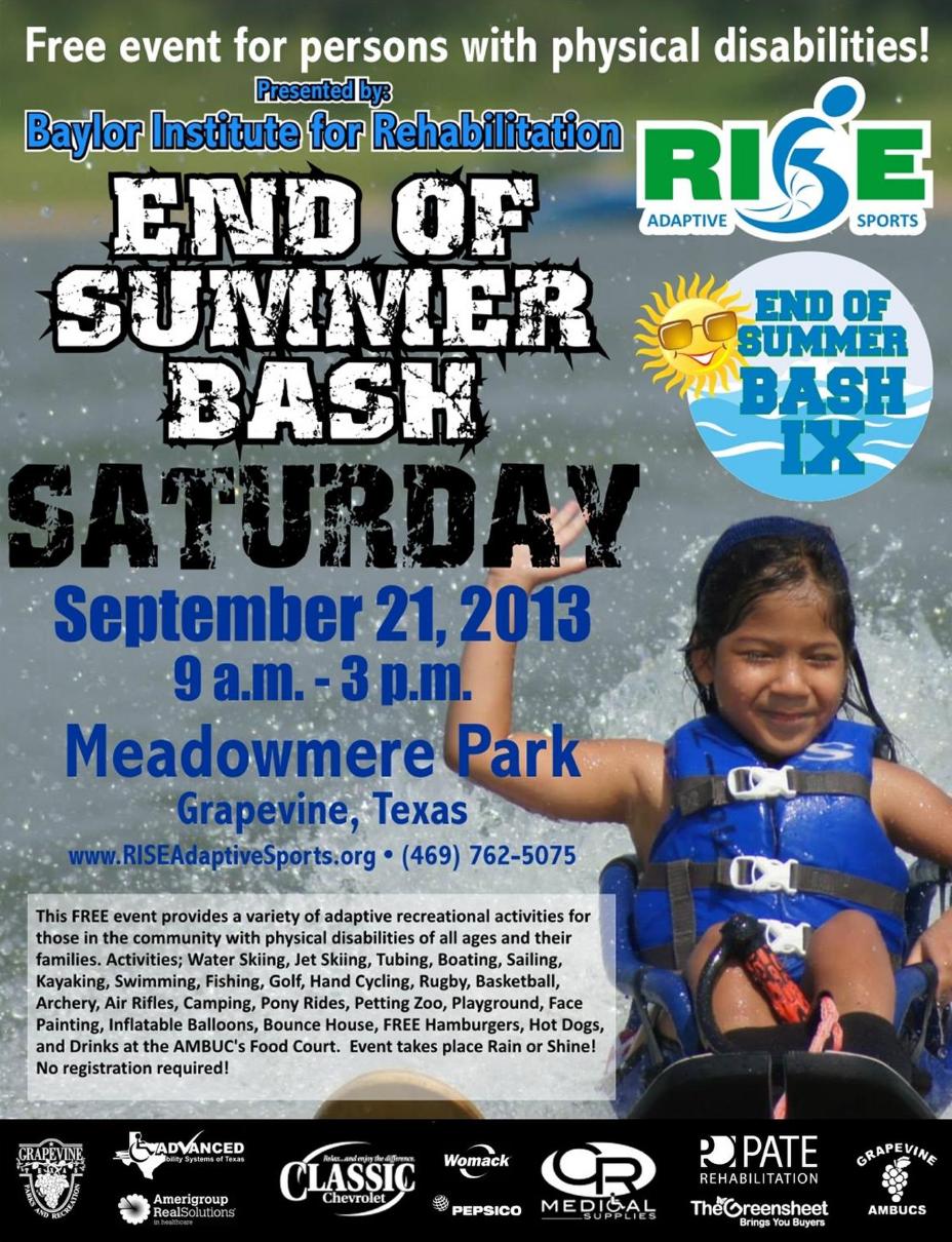 6-year-old Anais Cabello was born with spina bifida, a birth defect that can lead to disabilities, including paralysis. But that hasn’t stopped her from trying new things. A photo of Anais is featured on this event poster promoting a RISE, adaptive sporting event for persons with disabilities. The event is presented by Baylor Institute for Rehabilitation.