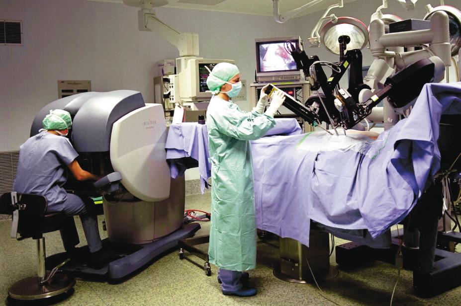 Robotics surgery: the "da Vinci" unit is designed to give a surgeon the superior precision and dexterity needed when performing minimally invasive operations (surgeon at the controls on left). Baylor University Medical Center performed the Southwest United States' first mitral valve procedure using robotics technology.