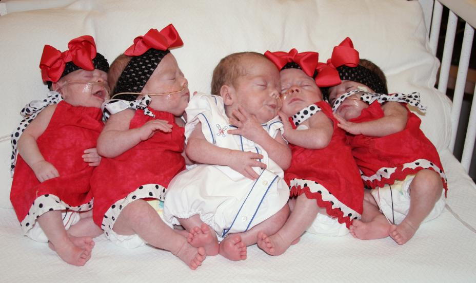 The first "official" group picture of the quintuplets. (left to right) Rayleigh, Gracie, Brant, Mia, Tessa.
